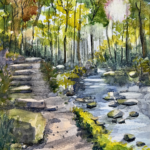 I've lived in the Holme Valley, West Yorkshire all my life, but enjoy travelling and visiting Europe or the Mediterranean as often as possible. This has influenced my paintings and sketches a lot, particularly my pen and wash work.