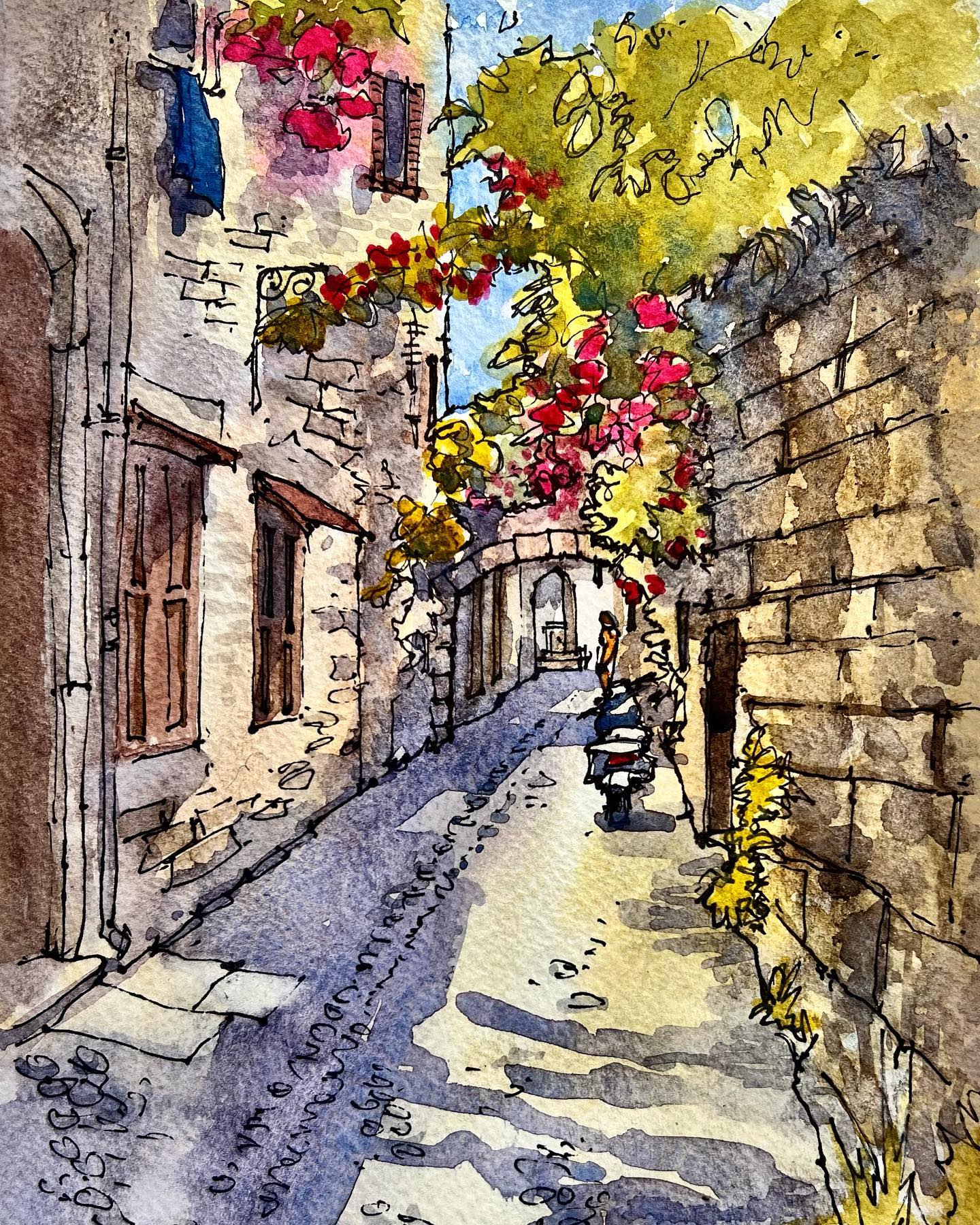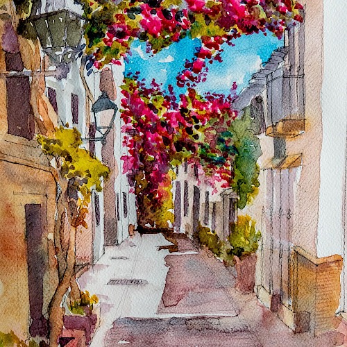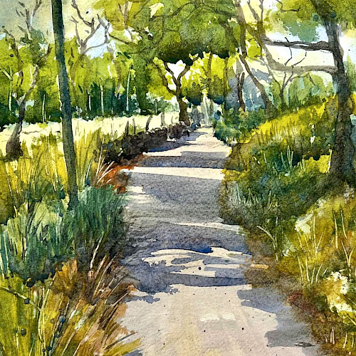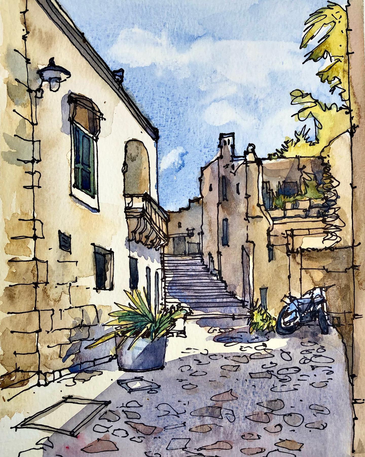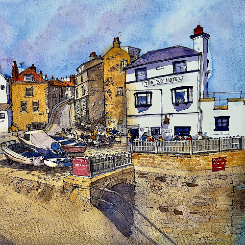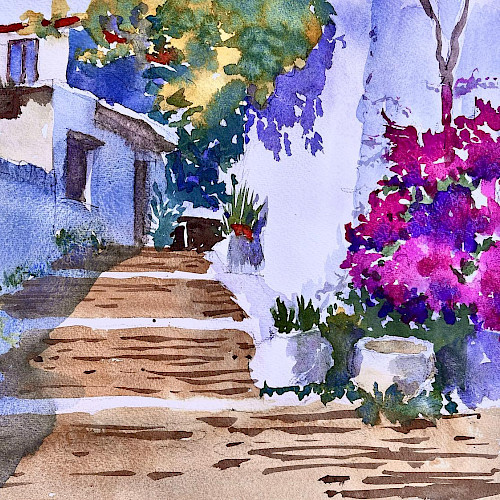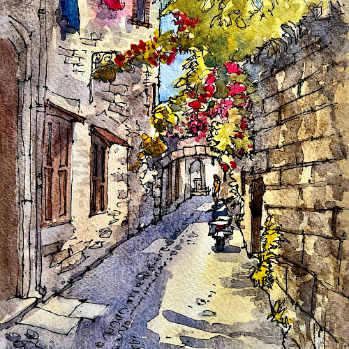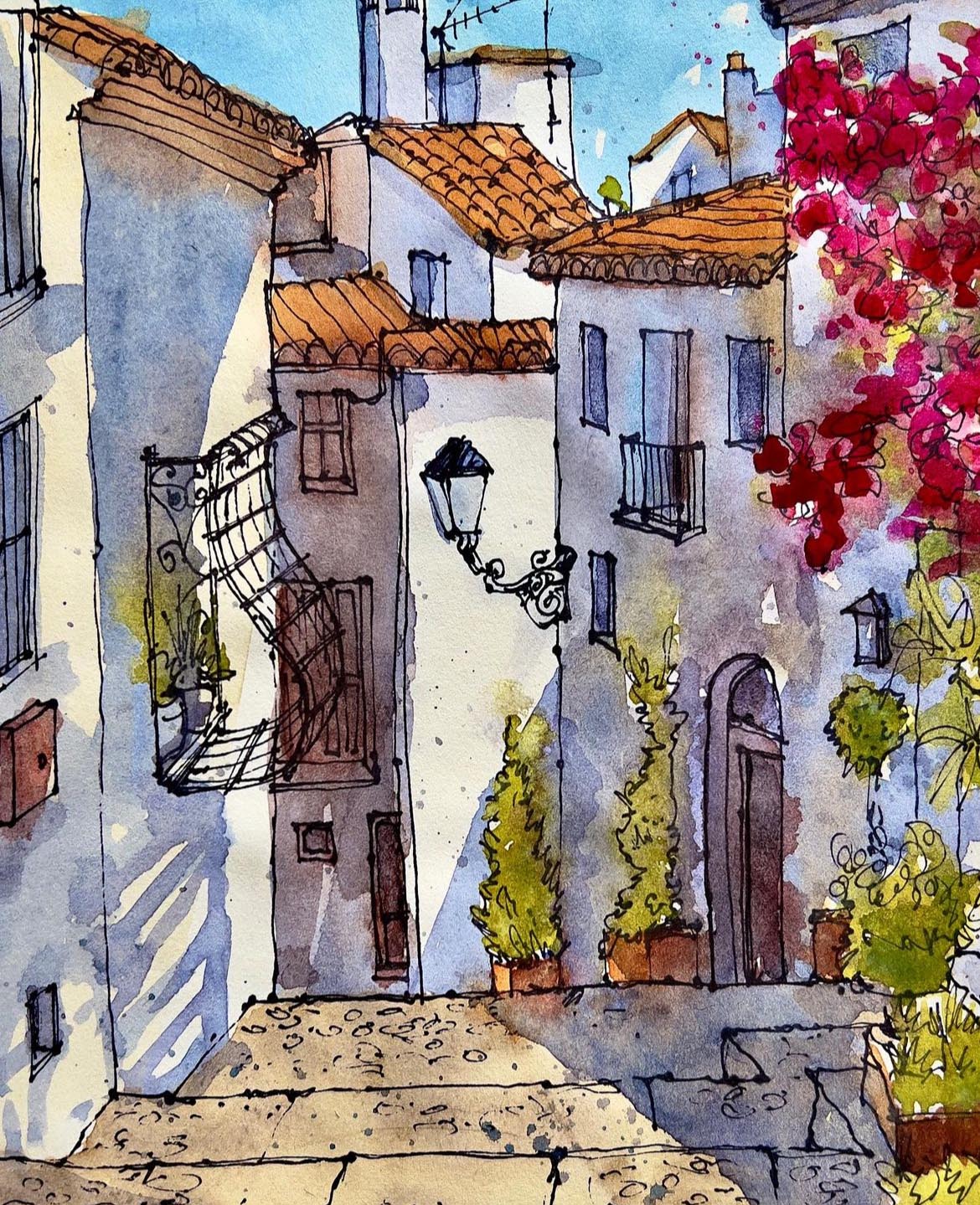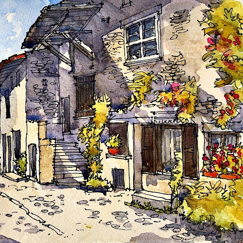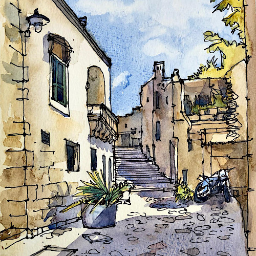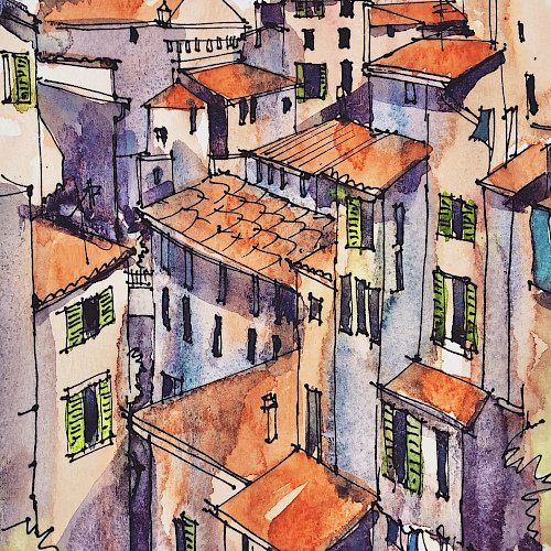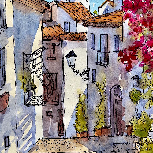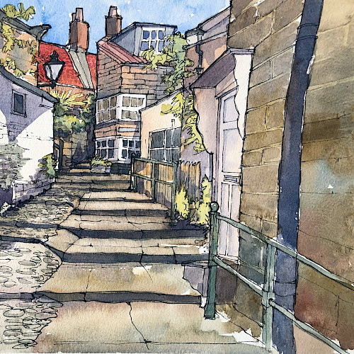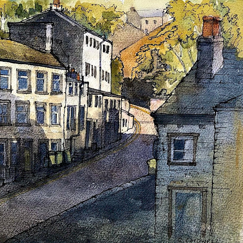 I've lived in the Holme Valley, West Yorkshire all my life, but enjoy travelling and visiting Europe or the Mediterranean as often as possible. This has influenced my paintings and sketches a lot, particularly my pen and wash work.