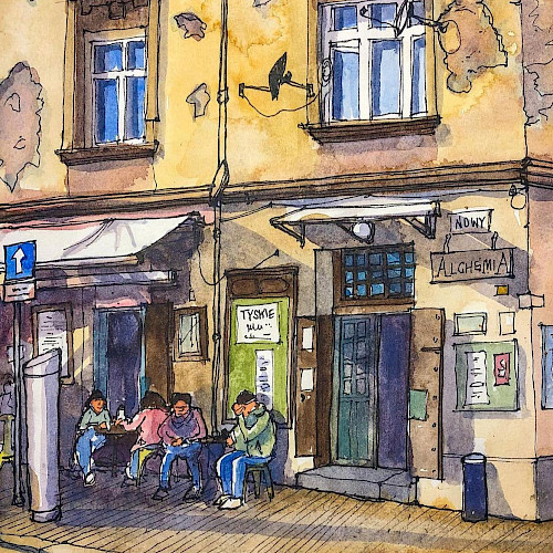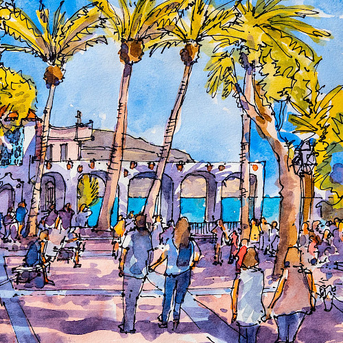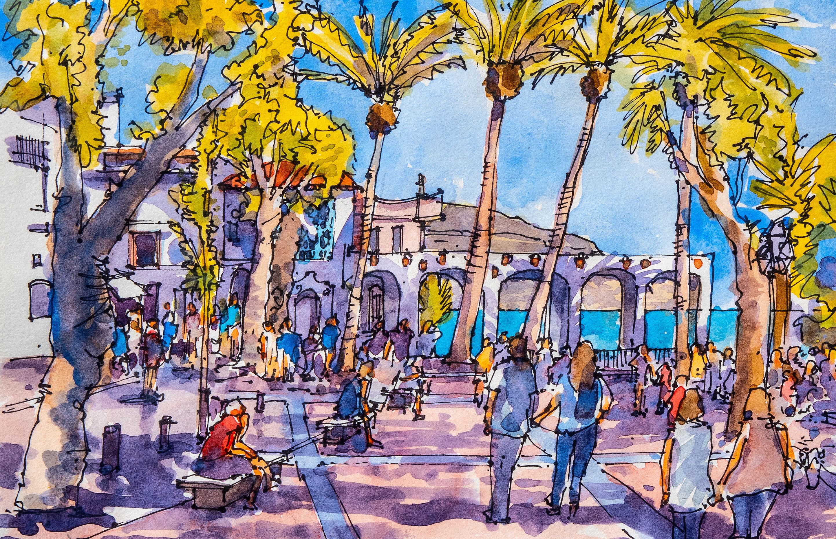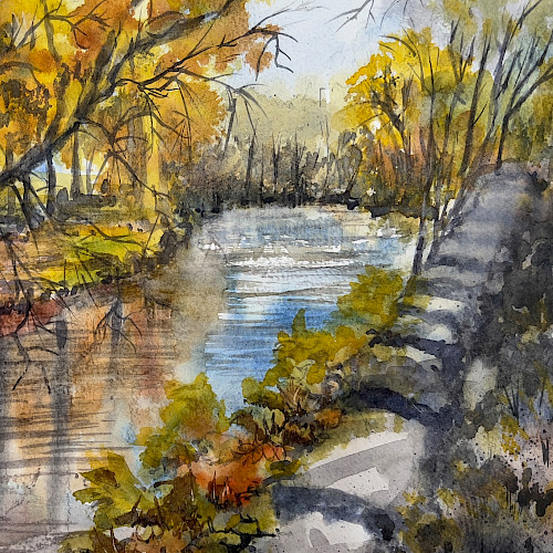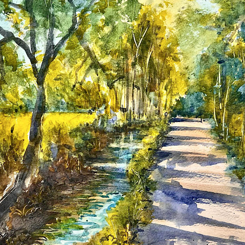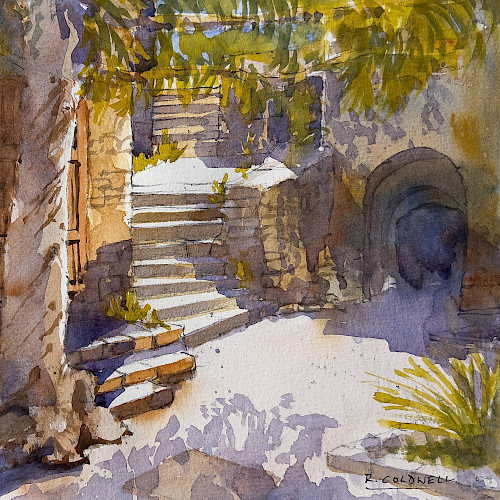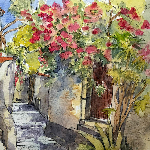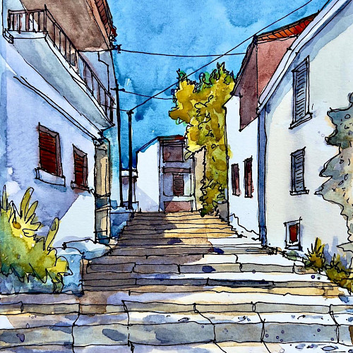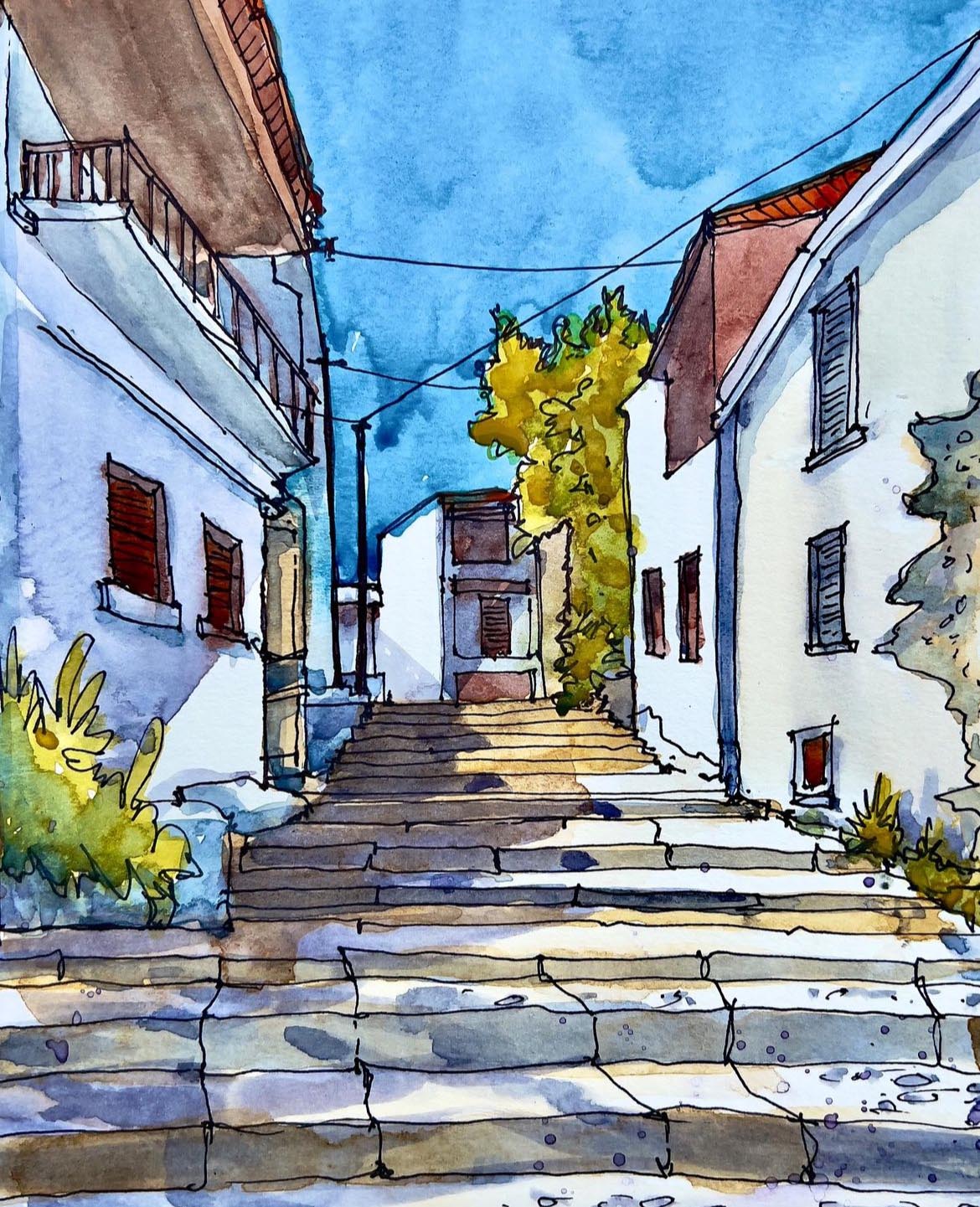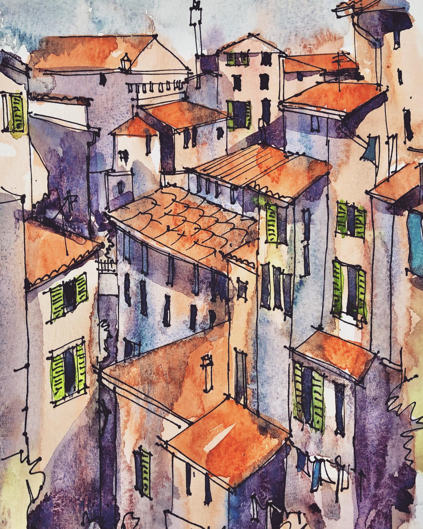 I've lived in the Holme Valley, West Yorkshire all my life, but enjoy travelling and visiting Europe or the Mediterranean as often as possible. This has influenced my paintings and sketches a lot, particularly my pen and wash work.